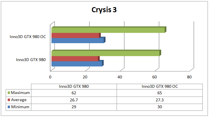 Even though the card has 4GB VRAM it still manages to perform nicely in the Ultra setting suite which emulates 4K performance. This shows that the GTX 980 iChill can handle 4K playback at respectable settings.